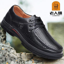 老人头男鞋夏季透气镂空商务休闲皮鞋男真皮软底耐磨中老年爸爸鞋