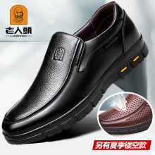 老人头男鞋夏季男士透气商务休闲皮鞋男真皮商务套脚中年爸爸鞋子