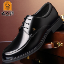 老人头皮鞋夏季男士正装商务皮鞋真皮英伦圆头系带牛皮青年婚鞋子