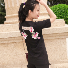 2017韩版夏季新款刺绣t恤女短袖宽松打底体恤显瘦圆领学生上衣潮