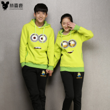 恭喜鹿2017秋加绒套装情侣装秋装抓绒卫衣带帽秋套装加厚学生班服