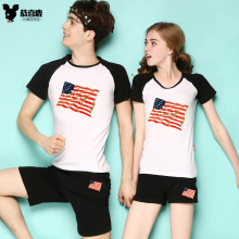 恭喜鹿2017沙滩情侣装夏装套装纯棉T恤沙滩短裤套装时尚印花T恤女