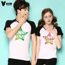 恭喜鹿沙滩情侣装夏装套装2017新款潮韩版糖果色短袖t恤女班服