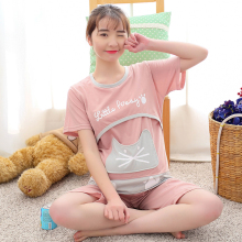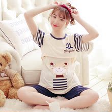 孕妇睡衣夏纯棉短袖月子服薄款韩版产后喂奶哺乳衣大码家居服套装