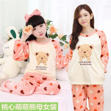 珊瑚绒儿童睡衣宝宝秋冬季亲子睡衣女童法兰绒加厚家居服母女套装
