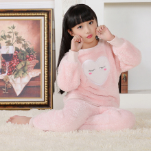 儿童睡衣女童秋冬季珊瑚绒法兰绒加厚女孩大童可爱卡通家居服套装