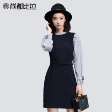 尚都比拉2017春装新款女装气质立领长袖假两件连衣裙修身显瘦裙子