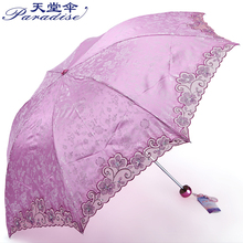 天堂伞三折叠386E花之心语大钢骨绣花晴雨伞防晒遮阳防紫外线伞