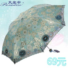 包邮天堂伞3070E玉叶金枝三折绣花亮片镂空太阳伞遮阳伞防紫外线