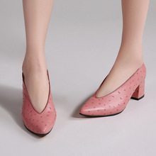 KAKA牛货~欧洲设计大咖纽约秀场MODEL展示款牛皮鸵鸟纹中跟女鞋