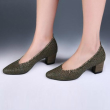 KAKA特惠~意大利设计师走秀款早秋客供编织羊皮女中跟乐福鞋