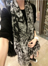 高档夏季真丝围巾桑蚕丝长款春秋百搭灰色蝴蝶女丝巾披肩轻薄两用