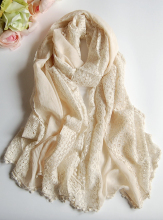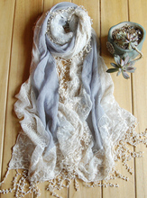 日本外贸原单 米色清新森女蕾丝长款女拼接围巾 春秋文艺棉麻披肩