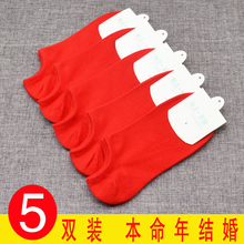 纯棉男士袜子本命年大红色短袜浅口船袜男短筒棉袜夏季薄款中筒袜