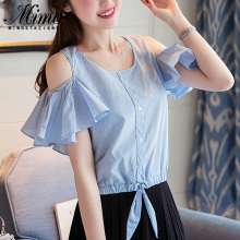 夏装女装2017新款t恤女士短袖宽松韩版百搭时尚露肩一字领上衣服