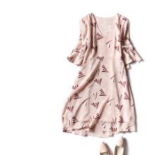 废墟[A3732]17夏 超仙 高端真丝 五分荷叶袖 中长V领印花连衣裙