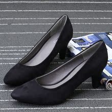 外贸单 意大利品牌 绒面锥形跟高跟单鞋女 浅口通勤尖头套脚女鞋