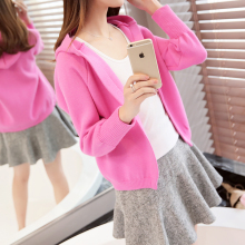 舒越春季新款韩版女装连帽针织开衫短款休闲百搭糖果色外套潮