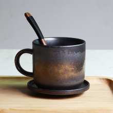 复古简约手工鎏金陶瓷咖啡杯套装带勺碟创意马克杯水杯定制礼物