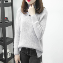 2016韩版秋冬新款纯色下摆长袖套头插肩袖开叉半高领毛衣女