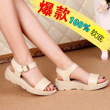 2017新款中跟凉鞋女夏厚底松糕鞋坡跟罗马鞋平底孕妇学生女鞋软底