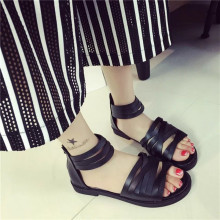 2017新款韩版凉鞋女夏平底罗马学生少女鞋子百搭潮初中学院风黑色