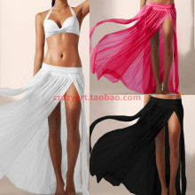 欧美外贸防晒披纱性感纯色纱裙小裙沙滩裙遮肚显瘦三角bikini