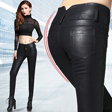 高腰加绒皮裤女外穿2016秋冬新款紧身PU皮裤小脚铅笔裤显瘦打底裤