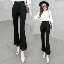 微喇叭裤女2017春夏新款韩版显瘦荷叶边高腰鱼尾裤黑色微喇裤女裤