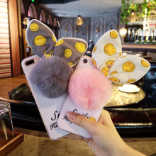 兔耳朵手机壳6plus女款可爱苹果6s毛绒球软壳iphone6立体毛绒超萌