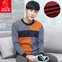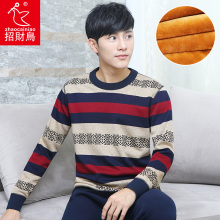 招财鸟青年男士保暖内衣加绒加厚羊毛衫韩版学生针织衫保暖套装