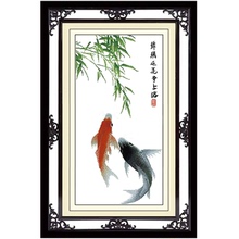 十字绣两条鱼富贵有鱼年年有余鱼图玄关走廊竖版过道精准新款餐厅