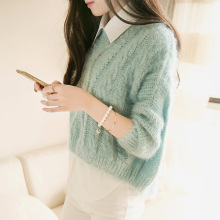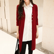 蜜女格格春秋新款薄毛衣外套韩版中长款宽松三粒扣V领针织开衫女