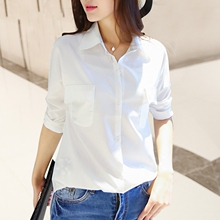 蜜女格格秋季新款打底衫韩版宽松显瘦前短后长口袋长袖白色衬衫女