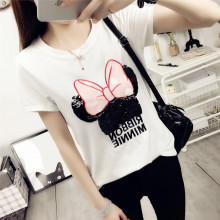2016夏装新款韩版卡通刺绣亮片半袖棉体恤衫宽松大码短袖T恤女潮