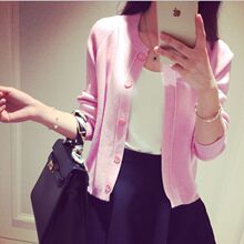 春秋新款韩版女装休闲纯色宽松上衣针织衫开衫毛衣女短外套小披肩