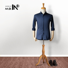 MBIN全棉贡缎微弹双色菱格印花商务休闲长袖男夏季修身韩式衬衣