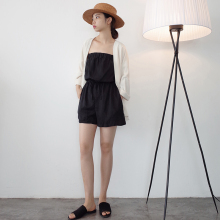 CBOMB / 2017ss 度假风 抹胸束腰 好质感棉质连体短裤 黑 k725