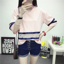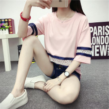 2016姐妹装宽松短袖t恤女夏季上衣五分袖蕾丝百搭韩版学生闺蜜装