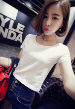 韩国高腰衣服短款夏韩版大码宽松中袖t恤女上衣露脐装漏肩短袖女