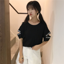 短袖T恤女宽松韩版学生夏装2017新款潮韩国印花百搭体恤打底衫bf