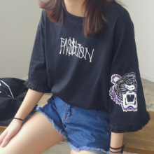 短袖t恤女夏韩版宽松上衣中袖韩国五分袖半袖镂空短款潮
