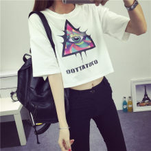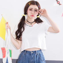 韩国高腰短款上衣服女士超短装显瘦露脐T恤夏漏肚脐短袖宽松体恤