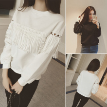 2016秋季新款韩版女装大码短款T恤女长袖宽松学生百搭蕾丝上衣服