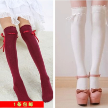 热卖 甜美荷叶花边 蝴蝶结 日系长筒袜 过膝高筒袜大腿袜子
