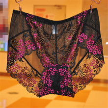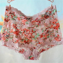 胖mm性感透明网纱玫瑰花纯棉底裆大码内裤女中腰多色女士内裤头女