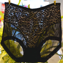 大码内裤女胖MM性感透明视网纱高腰豹纹包臀裤三角内裤头女