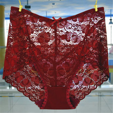 包邮加大码女士内裤性感蕾丝胖mm透明诱惑三角裤加肥190斤内裤女