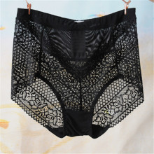2条包邮大码内裤女胖MM性感透明蕾丝网纱诱惑高腰提臀无痕平角裤