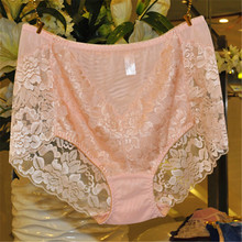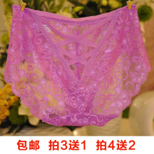 3条包邮 大码内裤女胖MM性感蕾丝镂空透明网纱高腰无痕新款内裤女